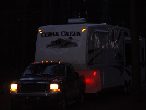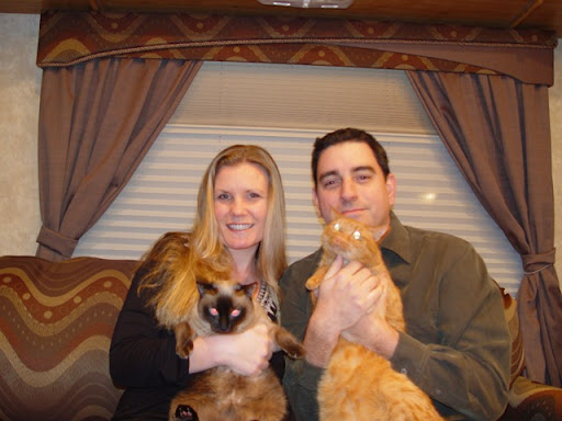 After only 8 months, we decided to trade in our beautiful Glendale Titanium 5th Wheel for an RV that had a better design. We knew that since we were planning to continue traveling for up to 5 years, we needed a larger bed, bigger refrigerator, and desk space for our 2 computers. Maybe we're spoiling ourselves a little, but we do live in here full-time. So, we packed up the RV, traumatized our poor kitties once again and moved into our 2008 Forest River Cedar Creek.