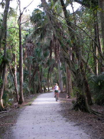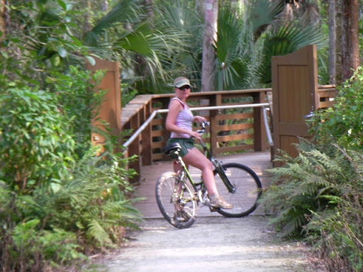 Joel and I explored the newly opened Riverbend Park just 4 miles east of his parents' house in Jupiter. What a wonderful place to bikeride to our heart's content.... observing an endless array of birds, turkeys, and even the occasional gator pass us by! Joel's parents joined us for a ride one day and Maxine, Joel's aunt, and I took a respite from our daily trek around the Farms and rode our bikes through this tropical wonderland. I can barely keep up with her! She is my inspiration, and I will NEVER get tired of this park!