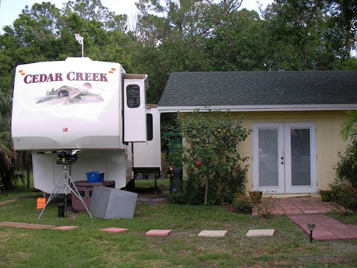 Good neighbors! We're nestled into the side yard, right next to Gram's country cottage! It was as if the RV were made to park right here!