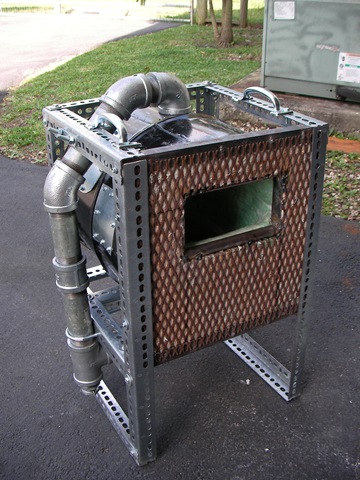Joel constructed the glory hole you see below using steel, ceramic fiber blanket and refractory cement. This is his own custom structure designed with mobility in mind. The door is a baking pan insulated with ceramic fiber blanket.